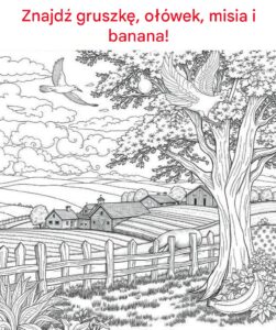 Znajdź gruszkę, ołówek, misia i banana