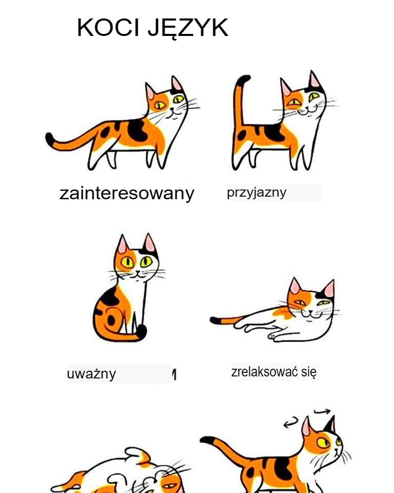 Ogon między nogami: Kot, który trzyma ogon między nogami, zazwyczaj jest przestraszony lub czuje się winny. Często jest to oznaką niepewności lub uległości.