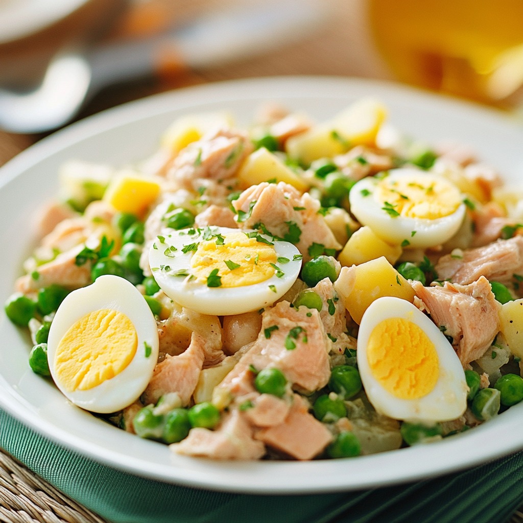Sałatka z tuńczykiem, jajkiem na twardo i ziemniakami