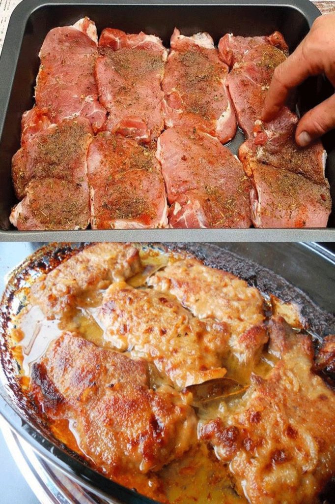 Składniki: 5 steków z karkówki 1 duża cebula 5 ząbków czosnku 1 kostka do gry wołowina 500 ml wody 100 ml białego wina q.s. sól, pieprz, liście laurowe , olej , Mąka Przygotowanie: