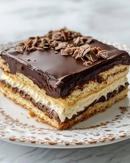Składniki Krem: 500 ml mleka 1 opakowanie budyniu waniliowego (bez cukru) 3 łyżki cukru 250 g serka mascarpone 200 ml śmietanki 30% Warstwy: 300 g herbatników maślanych Polewa czekoladowa: 100 g gorzkiej czekolady 50 ml śmietanki 30% 1 łyżka masła Przygotowanie