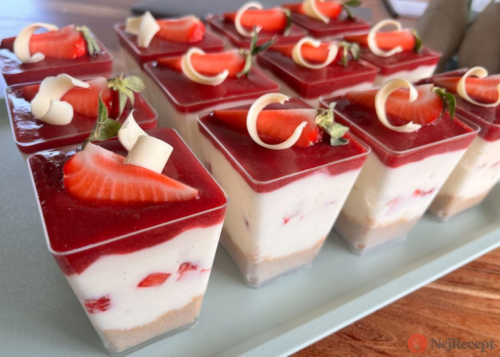 Orzeźwiające kubeczki sernikowe bez pieczenia z truskawkami i galaretką truskawkową