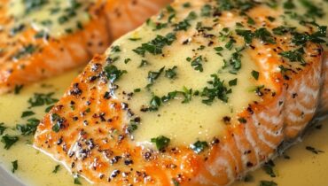 Pieczony łosoś z kremowym sosem cytrynowo-czosnkowym to pyszne danie