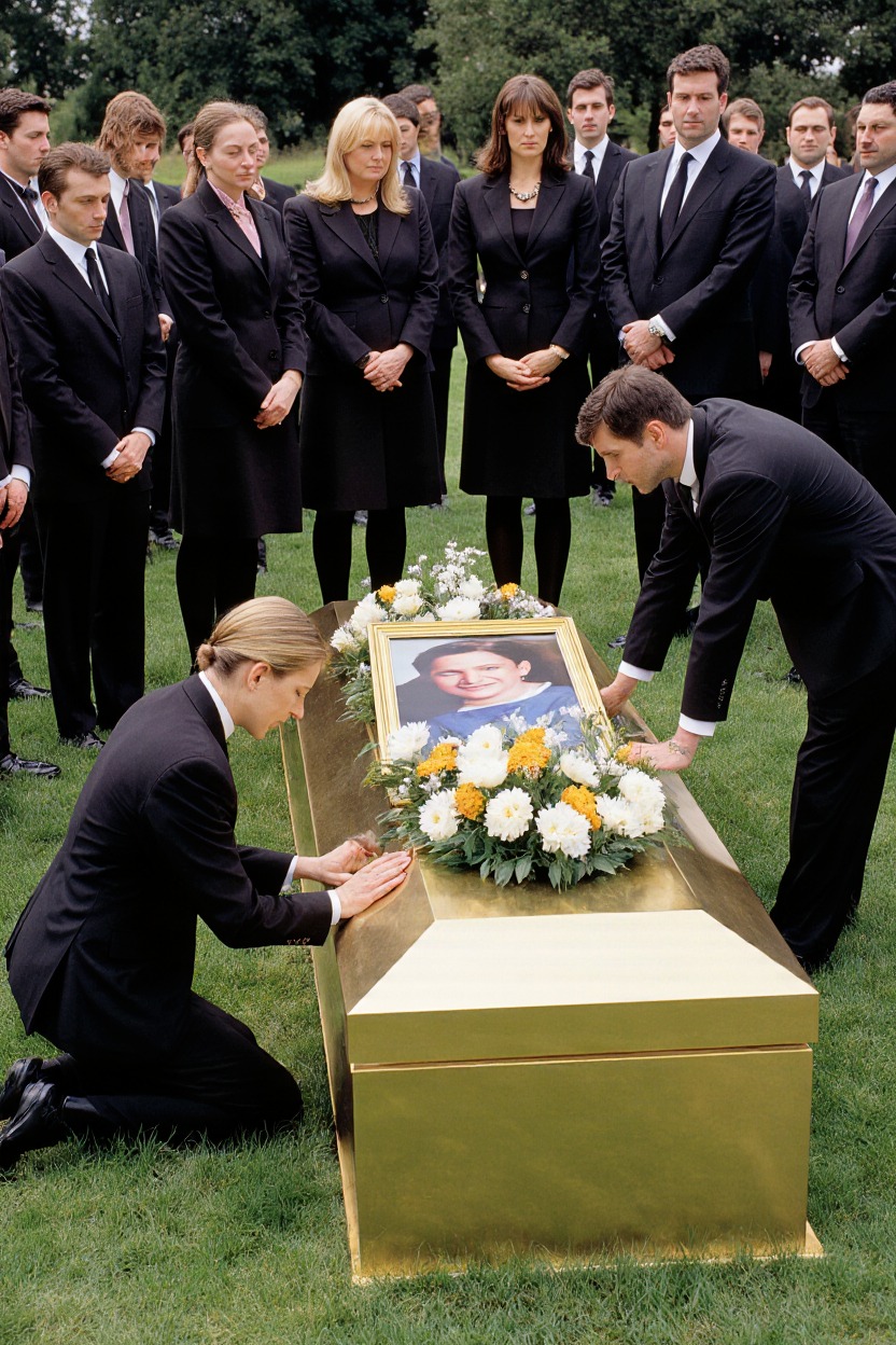Na środku podwórza, na dwóch drewnianych krzesłach, stała pozłacana trumna. Żałobnicy siedzieli ciasno wokół niej, każdy z głową pochyloną w żalu po Elenie, delikatnej synowej, która właśnie zmarła z powodu przedwczesnego porodu.