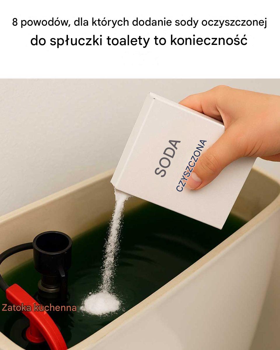 Aby użyć sody oczyszczonej jako środka czyszczącego, wystarczy wsypać jej filiżankę do spłuczki toalety i pozostawić na kilka godzin przed spłukaniem. Dzięki temu soda oczyszczona rozpuści się i zadziała, czyszcząc spłuczkę bez użycia toksycznych środków chemicznych.