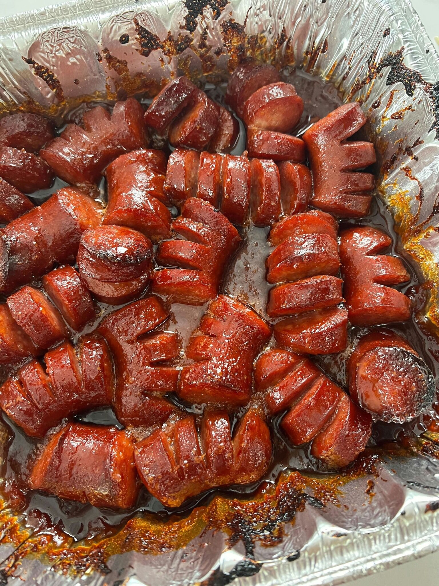 Te kandyzowane kawałki kiełbasy to nieodparcie pyszna przystawka, oferująca idealną równowagę między słodyczą, wytrawnością i nutą kwaskowatości. Pokrojona kiełbasa jest poddawana obróbce termicznej, aby uzyskać dodatkową powierzchnię pod lepką, karmelizowaną polewę z brązowego cukru, ketchupu i chrzanu, dzięki czemu każdy kęs jest pełen smaku.
