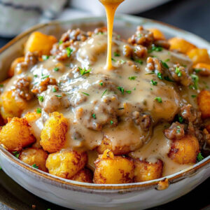 Miska śniadaniowa Tater Tot z sosem kiełbasianym – Pyszna, sycąca opcja na początek dnia