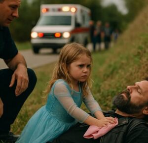 „Proszę, mamusiu! On jest tam na dole! Ten facet w skórzanej kurtce i z brodą – krwawi! Proszę, on potrzebuje pomocy!”