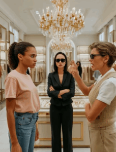 Słowa te padły z ust Lindy Matthews , menedżerki butiku, kobiety po czterdziestce, z prostą fryzurą typu bob i aurą wyższości. Inni klienci odwracali głowy, wyczuwając napięcie.