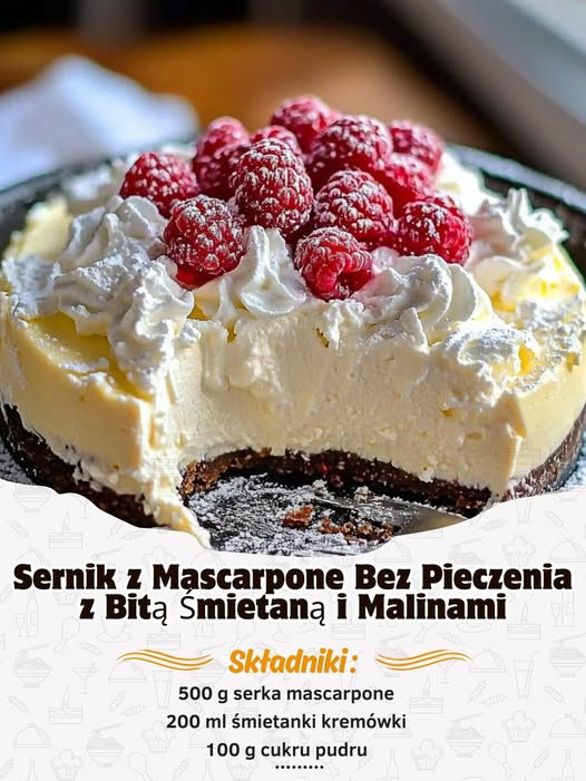 Sernik na zimno z mascarpone bez pieczenia to elegancki, kremowy deser, który zachwyci gości podczas każdej okazji — od rodzinnych spotkań po wykwintne przyjęcia. Połączenie aksamitnego mascarpone, delikatnej bitej śmietany i soczystych malin tworzy wyjątkowy smak, który kojarzy się z luksusem, klasyką i domowym komfortem. Ten przepis jest nie tylko prosty do przygotowania, ale także wszechstronny, umożliwiający personalizację według sezonowych owoców i preferencji smakowych.