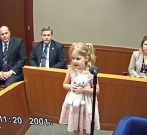 oddech, tuląc się do Pana Whiskersa, jakby szukał otuchy u swojego pluszowego towarzysza. Jej cichy głos, pełen niewinności i mądrości działającej poza jej wiekiem, zdawał się reagować echem w cichej sali sądowej.