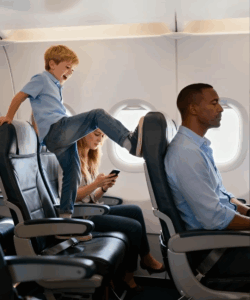 Odwróciłem się grzecznie, wymuszając zmęczony uśmiech. „Hej, kolego, mógłbyś spróbować nie kopnąć siedzenia? Jestem trochę zmęczony”.