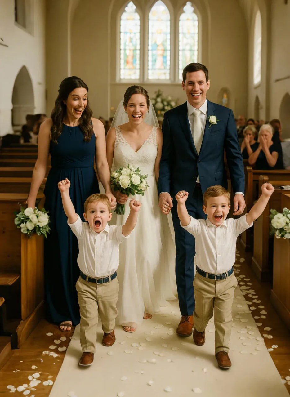 Moi siostrzeńcy szli przede mną na moim ślubie — i krzyknęli coś, co skradło serca wszystkich.