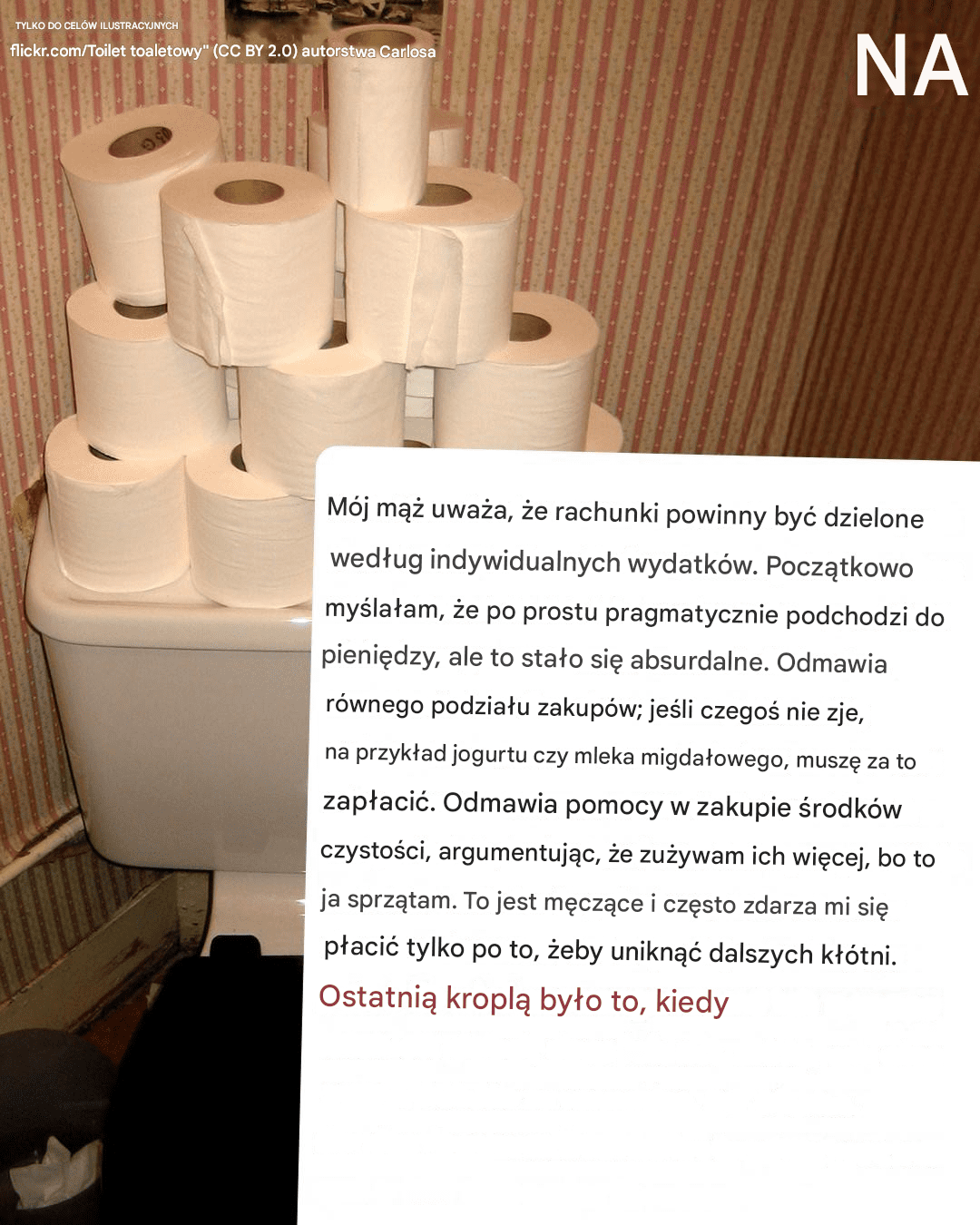 „Sprawiedliwa” wersja Thomasa powoli przekształciła się w obsesję dzielenia się każdym groszem. Oddzielne konta były dobre, ale potem pojawił się skrupulatny podział wydatków na podstawie tego, kto z czego korzystał.