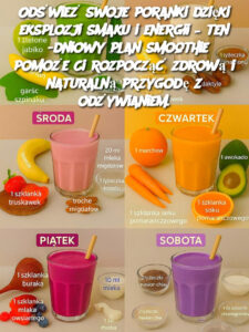 Odśwież swoje poranki dzięki eksplozji smaku i energii – ten 6-dniowy plan smoothie pomoże Ci rozpocząć zdrową i naturalną przygodę z odżywianiem.
