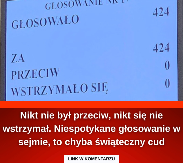 W czwartek, 20 grudnia 2025 roku, w polskim Sejmie doszło do niecodziennego głosowania. Wszyscy obecni na sali posłowie, łącznie 424 osoby, opowiedzieli się za nowelizacją ustawy. Nikt nie głosował przeciw ani nie wstrzymał się od głosu.