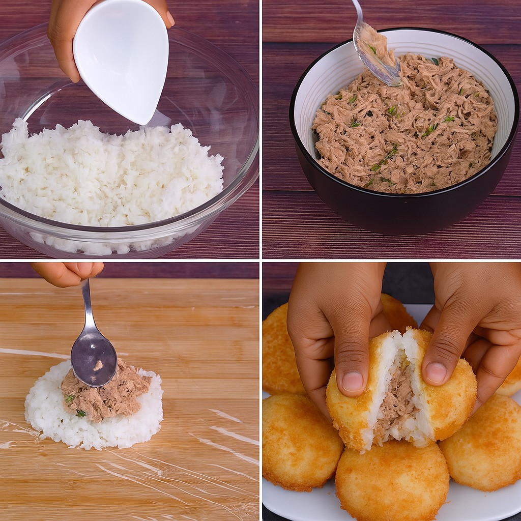 Kulki ryżowe faszerowane tuńczykiem: chrupiące na zewnątrz, kremowe w środku