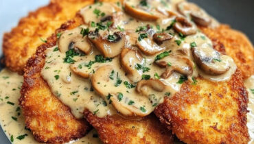 Złoty chrupiący kurczak z pieczarkami i sosem parmezanowym