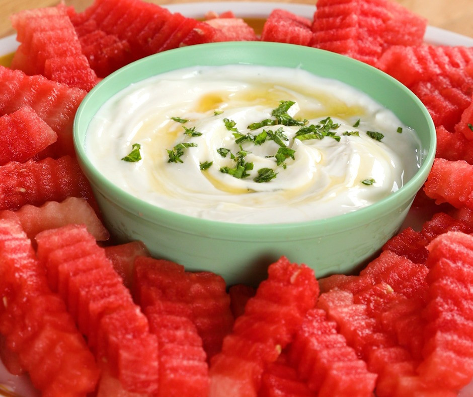 Chrupiące, soczyste frytki z arbuza to świetna alternatywa dla słodkich deserów 🍬. Podane z kremowym dipem na bazie jogurtu i miodu – znikają w mgnieniu oka! 🤩👌