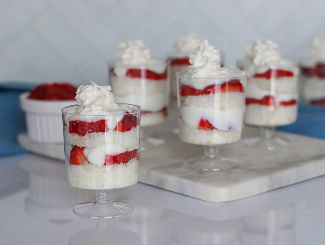 Biszkopty pokrój na małe kawałki i włóż na dno małych szklaneczek