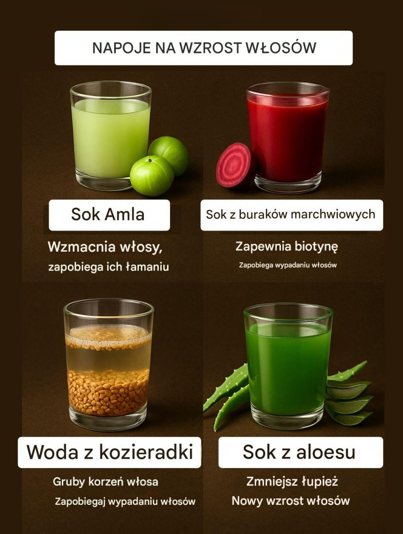 Osiągnięcie bujnych, zdrowych włosów nie zależy wyłącznie od zewnętrznych produktów kosmetycznych – to, co spożywasz, odgrywa kluczową rolę w ich wzroście i ogólnej kondycji. Twoje włosy potrzebują odpowiednich składników odżywczych, nawilżenia i minerałów, aby rosnąć silne, długie i lśniące. Szczęśliwie natura oferuje wiele naturalnych składników, które można wykorzystać do stworzenia prostych, skutecznych napojów domowej roboty. Oto 7 najlepszych napojów wspomagających porost włosów, przygotowanych z dostępnych składników, które możesz łatwo znaleźć i przygotować w domu.