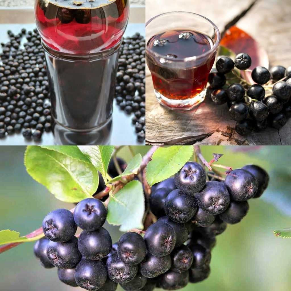 Aronia w różnorodnych formach (np. świeża, suszona, sok, dżem)