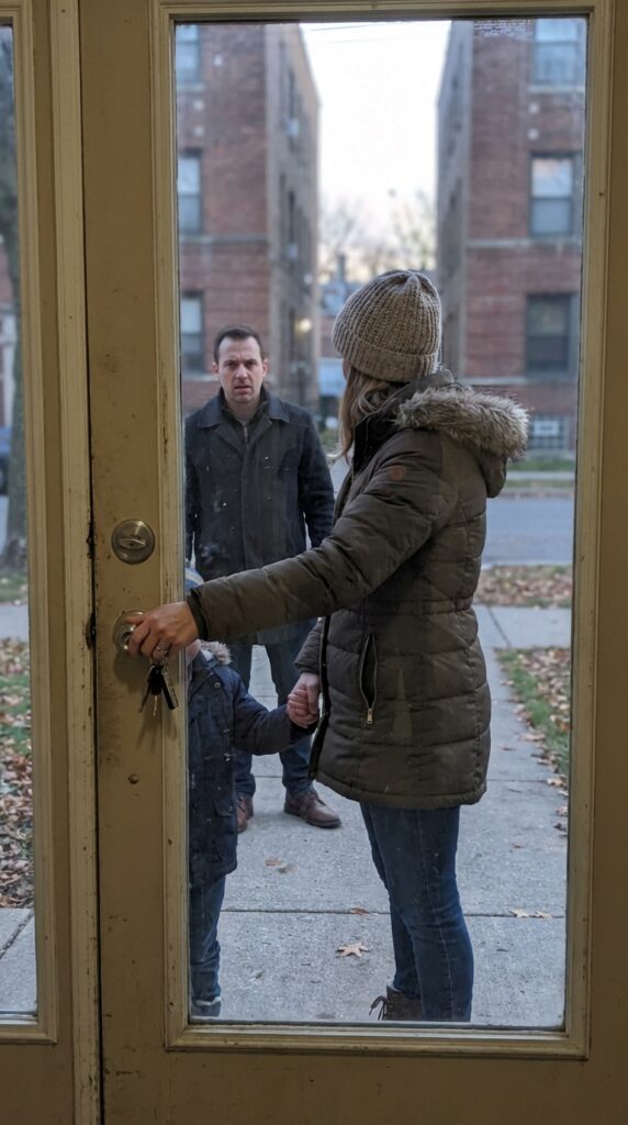Mark stał w drzwiach, jego ręka na klamce, gotowy zamknąć nas z naszego domu.