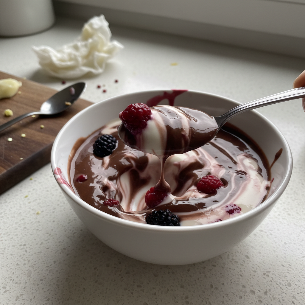 Stir the melted chocolate into the yogurt.