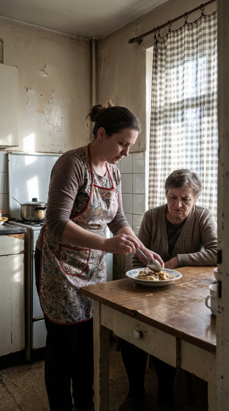 To było spokojne niedzielne popołudnie w naszej małej kuchni, światło słoneczne ślizgające się przez okno na noszonym stole, gdzie nerwowo poplamiłem obiad.