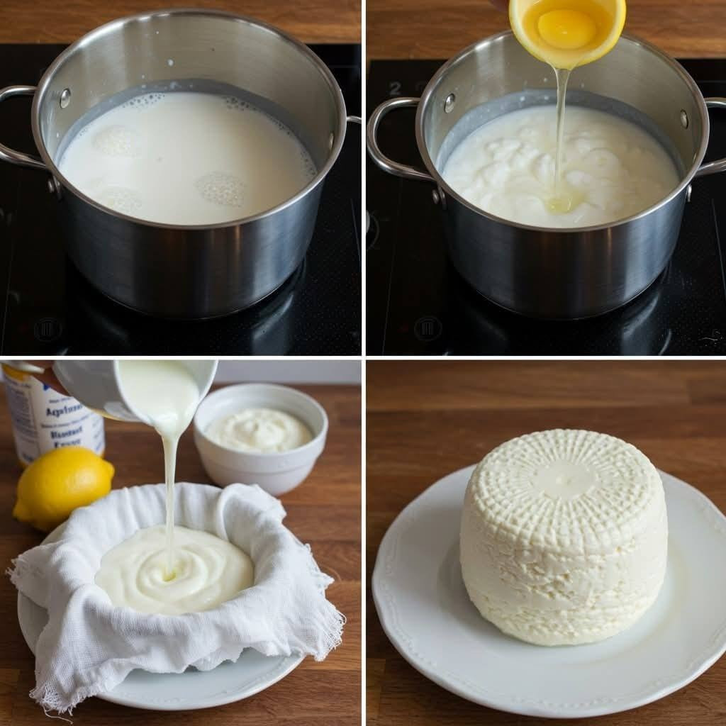 Domowy serek z 1 litra mleka, połowy cytryny i 1 jogurtu