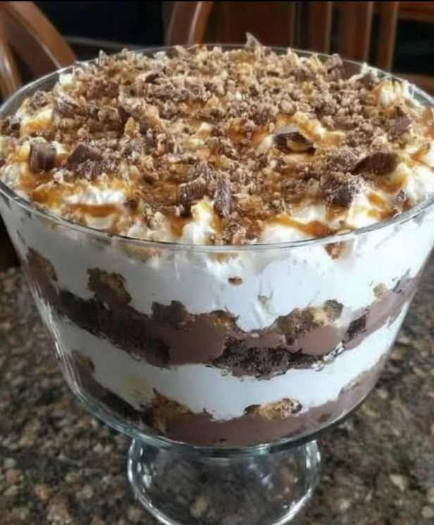 Wyobraź sobie: bogate, kremowe kawałki brownie przełożone bogatym budyniem czekoladowym, bitą śmietaną i chrupiącymi kawałkami toffi, tworząc najwspanialszą kombinację konsystencji, jakiej kiedykolwiek doświadczysz. Każda łyżka oferuje idealną równowagę ciągnącej, kremowej i chrupiącej konsystencji, która sprawi, że wszyscy zamkną oczy w czystej rozkoszy. A co najlepsze? Nie wymaga pieczenia! Wystarczy nałożyć warstwy, schłodzić i delektować się magią!
