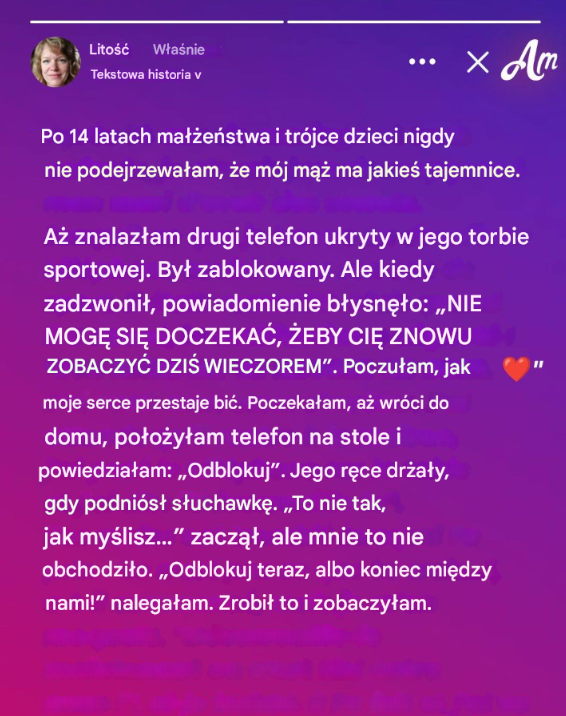 To nie był zwykły telefon Chada. Ten, który trzymałam setki razy, czytając mu SMS-y na głos, gdy prowadził. Ten, którego kod dostępu znałam. Ten, na którym bawiły się nasze dzieci, czekając u lekarza.