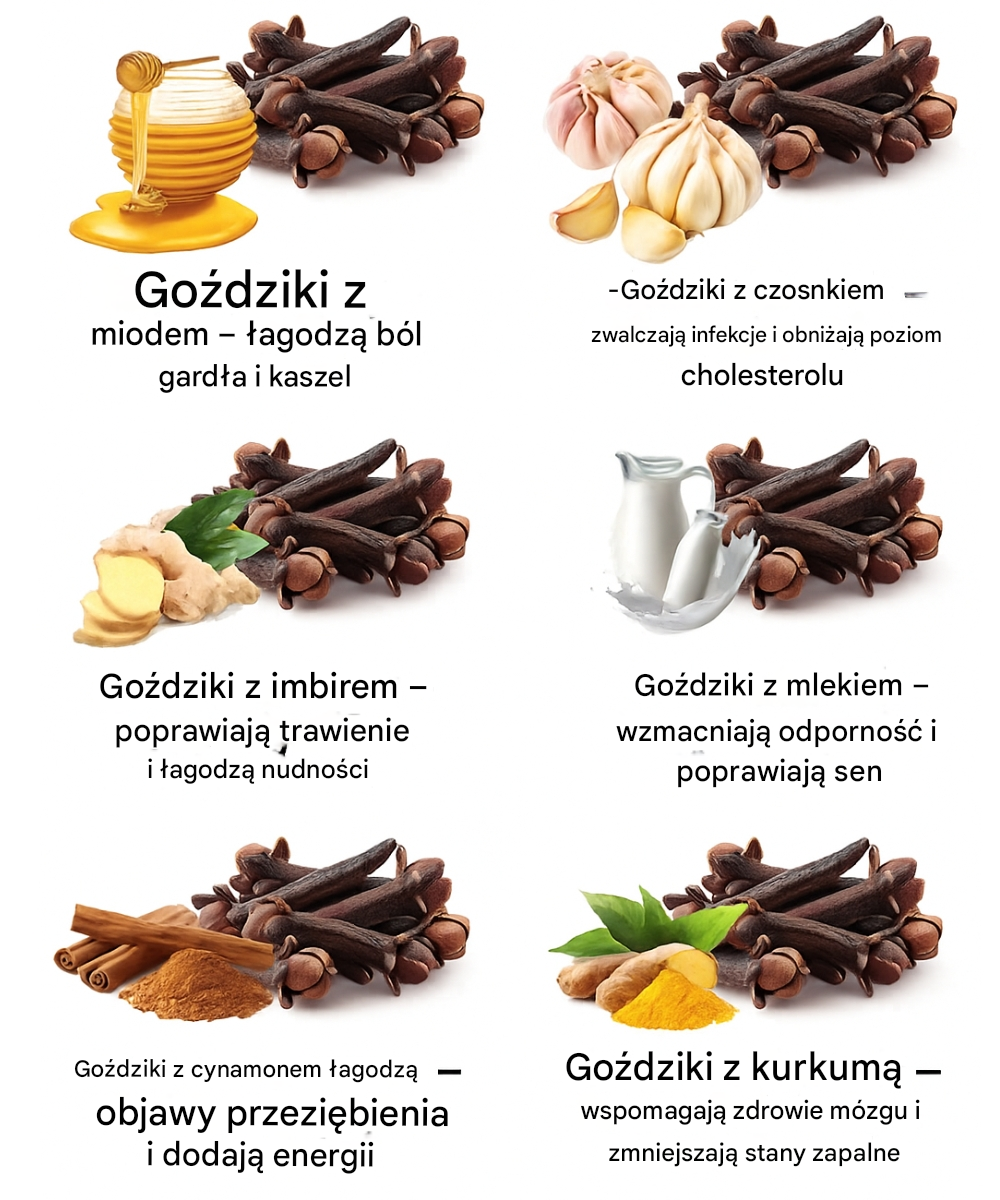 1. Goździki z miodem – łagodzą ból i kaszel.