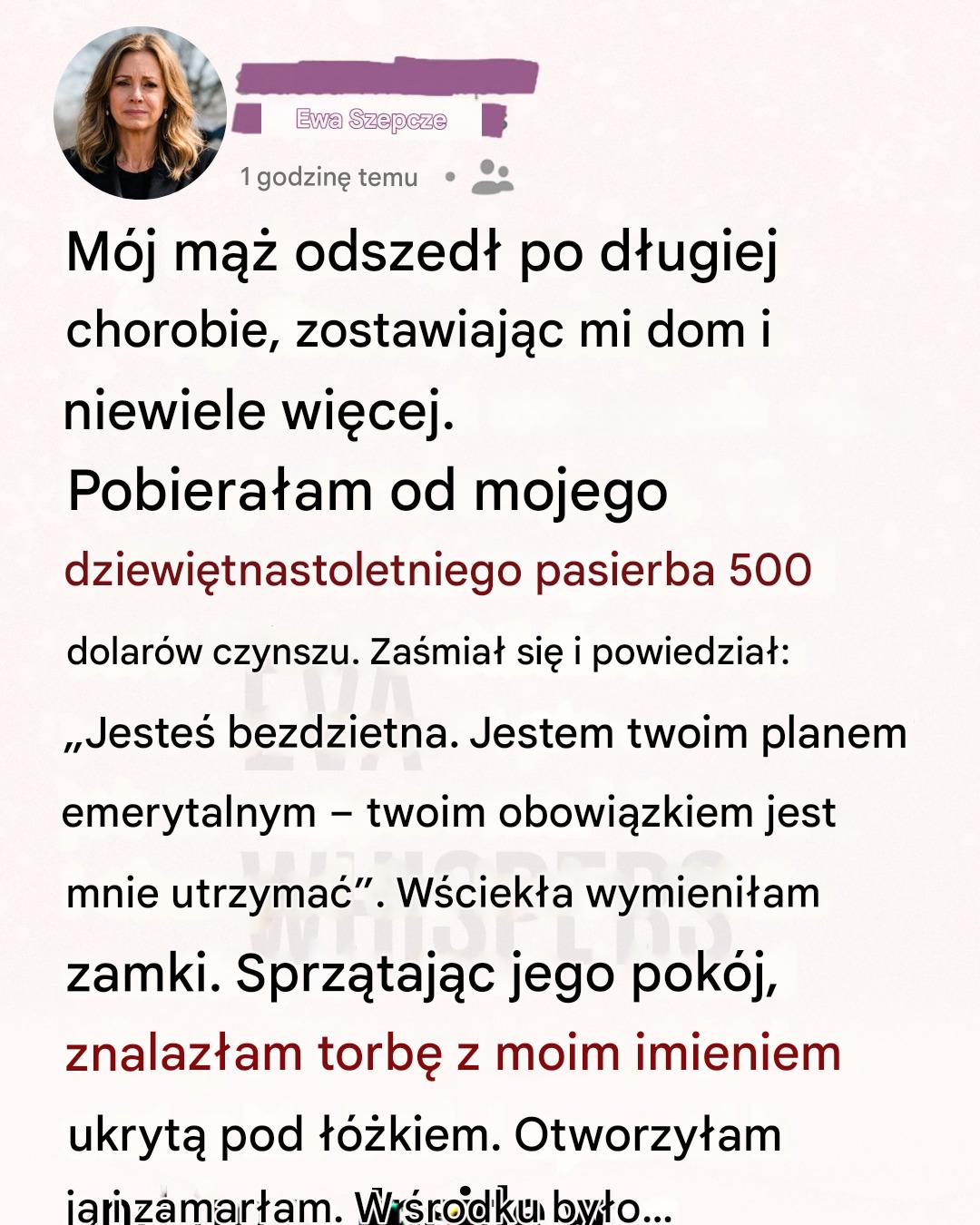„Wiem, że czasem siedzisz wieczorami przy kuchennym stole, przeglądając rachunki, myśląc, że nikt cię nie widzi” – zaczynał. „Wiem, że boisz się zestarzeć w samotności, skończyć zapomnianym gdzieś, gdzie nikt cię nie odwiedzi”.