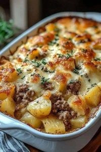 Zapiekanka ziemniaczana z hamburgerami ma w sobie coś prawdziwie kojącego. Ten przepis łączy w sobie to, co najlepsze z dwóch klasycznych dań – hamburgerów i ziemniaków – w jedno łatwe w przygotowaniu danie, które jest jednocześnie sycące i sycące. Piękno tej zapiekanki tkwi w jej prostocie, wszechstronności i możliwości nakarmienia dużej grupy osób. Mielona wołowina połączona jest z delikatnymi ziemniakami, kremowym serem i aromatycznymi przyprawami, tworząc danie pełne smaku w każdym kęsie.