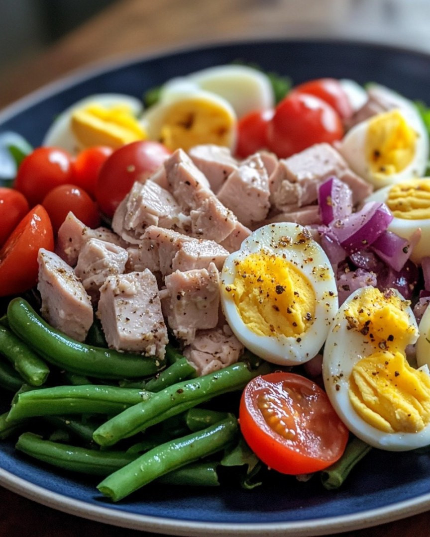 Sałatka nicejska Artykuł znajduje się w pierwszym komentarzu February 5, 2026 by Admin Składniki: 2 szklanki młodych ziemniaków, pokrojonych w plasterki 1 szklanka zielonej fasolki szparagowej, bez łodyg 4 duże jajka 1 szklanka pomidorów, przekrojonych na pół 1/2 szklanki oliwek Kalamata Następna strona »