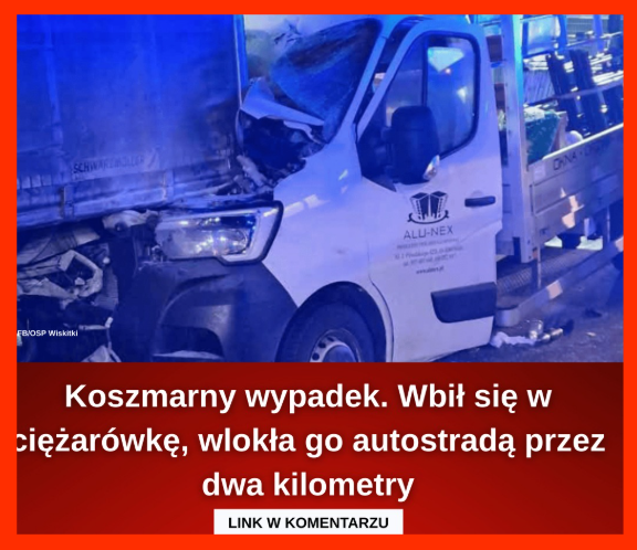 Koszmarny wypadek. Wbił się w ciężarówkę, wlokła go autostradą przez dwa kilometry