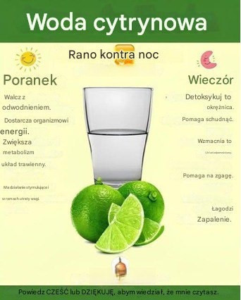 Rozpoczęcie dnia od szklanki ciepłej wody z sokiem z cytryny to doskonały sposób na pobudzenie metabolizmu i przygotowanie ciała do codziennych czynności. Wieczorem ciało rozpoczyna naturalny proces oczyszczania, a po przebudzeniu ważne jest picie dużej ilości płynów, aby wypłukać nagromadzone toksyny. Cytryna, bogata w witaminę C i przeciwutleniacze, pobudza trawienie, wspomaga pracę wątroby i poprawia wchłanianie składników odżywczych.