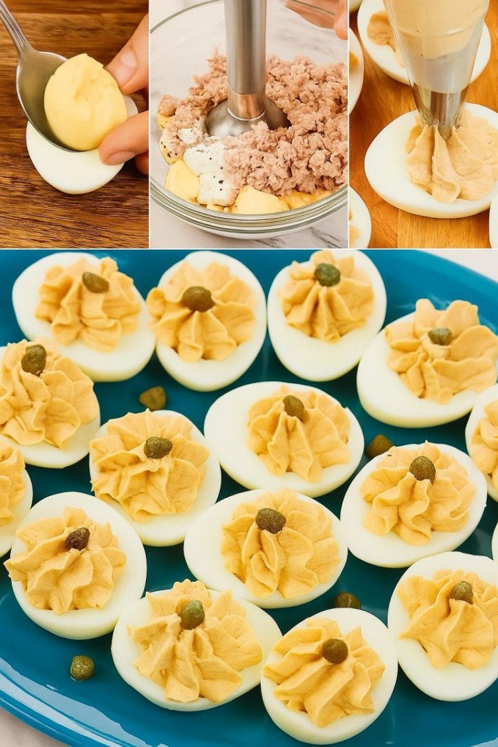 Szukasz szybkiej, pikantnej przekąski do drinków lub lekkiego lunchu? Te jajka z tuńczykiem łączą kremowe jajka na twardo z aromatycznym tuńczykiem i odrobiną majonezu. W kilka minut możesz przygotować kolorową i pożywną przystawkę, którą pokocha każdy.