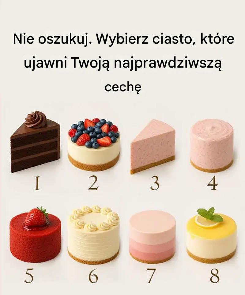 Ten zabawny quiz osobowości zachęca Cię do podążania za swoją intuicją. Spójrz na poniższe ciasta, wybierz to, które pierwsze przyciągnie Twoją uwagę i odkryj swoją najbardziej charakterystyczną cechę.