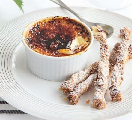 4 żółtka 400 ml śmietanki 30% 80 g cukru 1 laska wanilii (lub 1 łyżeczka ekstraktu) 3–4 łyżki cukru do karmelizacji