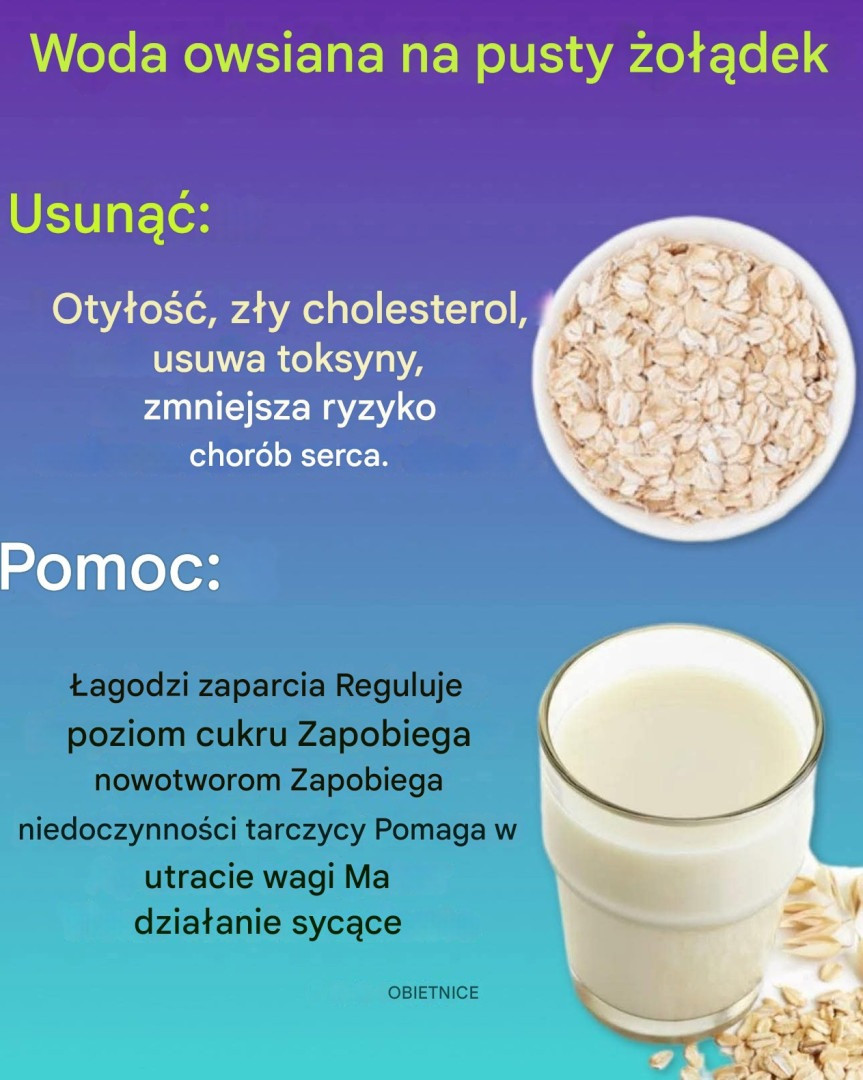 Jak wiadomo, owies zawiera dużą ilość błonnika, który znacznie przyspiesza pasaż jelitowy i usuwa wszystkie produkty przemiany materii, które zazwyczaj gromadzą się w jelitach, co pozwala na szybką utratę wagi. Zawiera również witaminy i minerały, które pomagają zachować dobre zdrowie, a jednocześnie schudnąć.