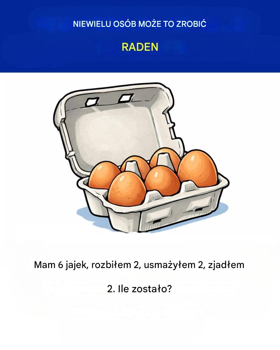 Jeśli się nad tym na chwilę spokojnie zastanowisz, najbardziej logiczną odpowiedzią są 4 jajka.