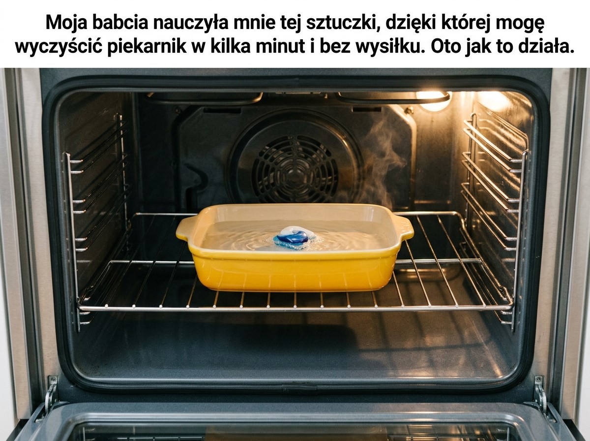 To babciny sekret, który mieści się w… kapsułce do zmywarki! Tak, tej, którą wsuwa się do przegródki na brudne naczynia. Dlaczego działa? Ponieważ te małe kapsułki zawierają silne środki odtłuszczające, które usuwają nawet najbardziej uporczywe zabrudzenia. A w połączeniu z parą, całe wnętrze piekarnika delikatnie zmiękcza. Niesamowite, prawda?1 kapsułka z detergentem do zmywarki (żel lub stała – obojętnie)