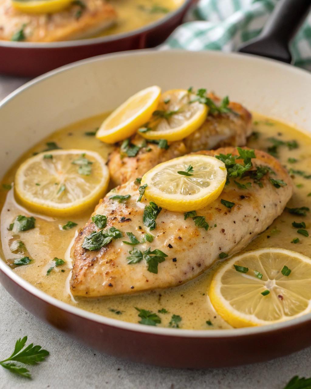 Kurczak z cytryną i pietruszką smażony na patelni