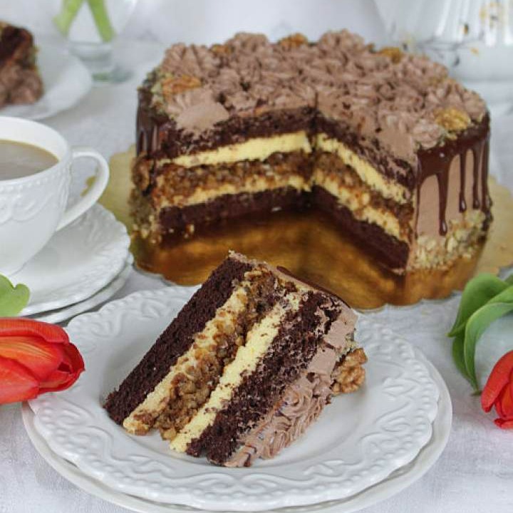 TORT CZEKOLADOWO ORZECHOWY Z NUTĄ KAWY